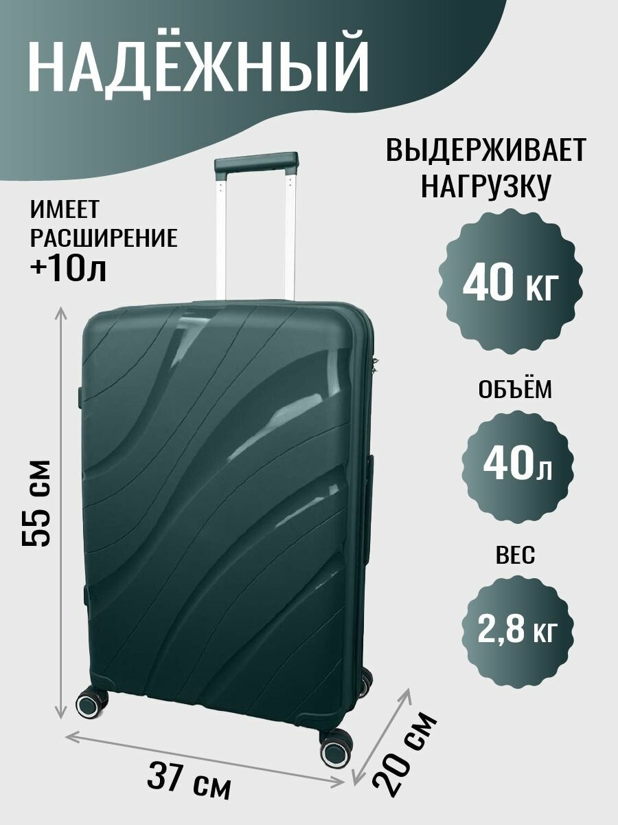 Чемодан на колесах дорожный ручная кладь в самолет s TEVIN размер С маленький мужской 55 см ручной 37 л cabin легкий полипропилен Зеленый темный луч 6 525 ₽