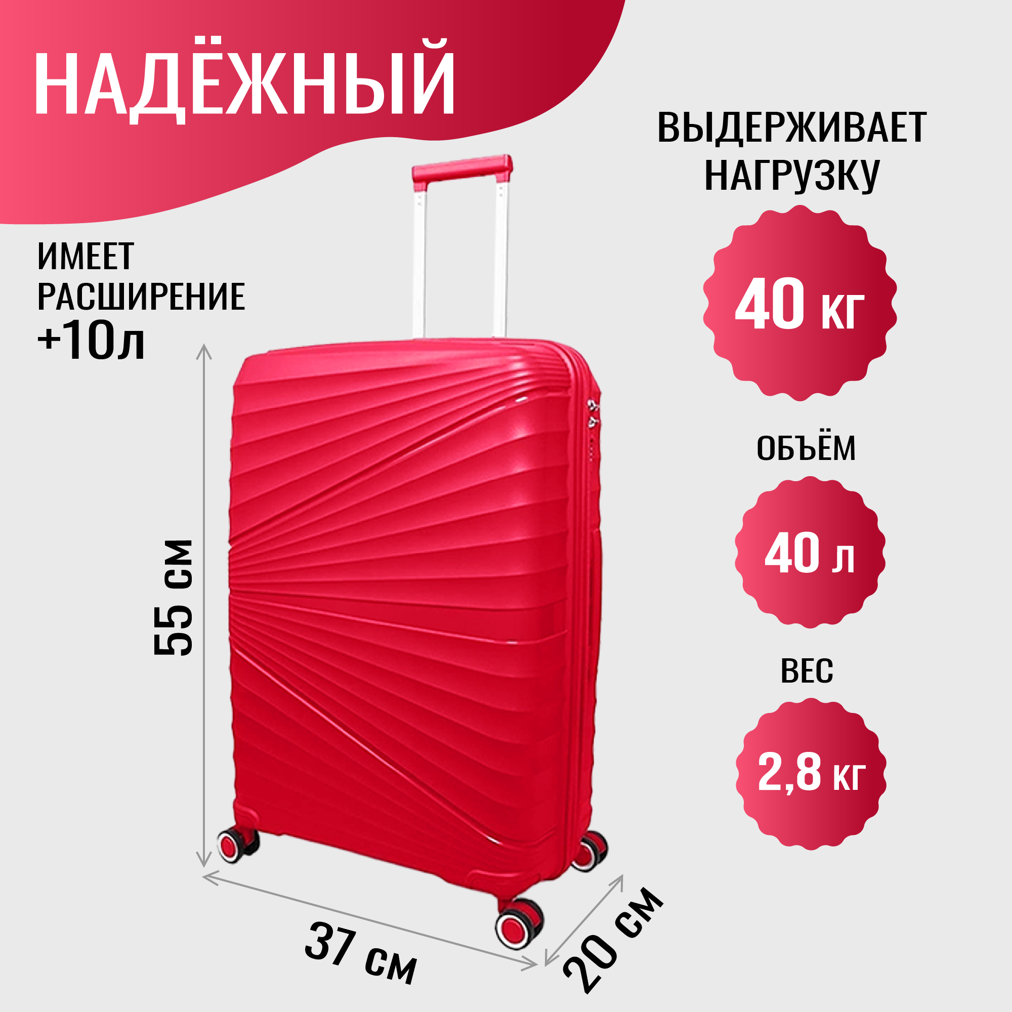 Характиристики этого товара не найдены!Отзывы на Чемодан на колесах дорожный ручная кладь в самолет s Тевин размер С маленький женский 55 см ручной 37 л cabin 21" легкий полипропилен Красный луч