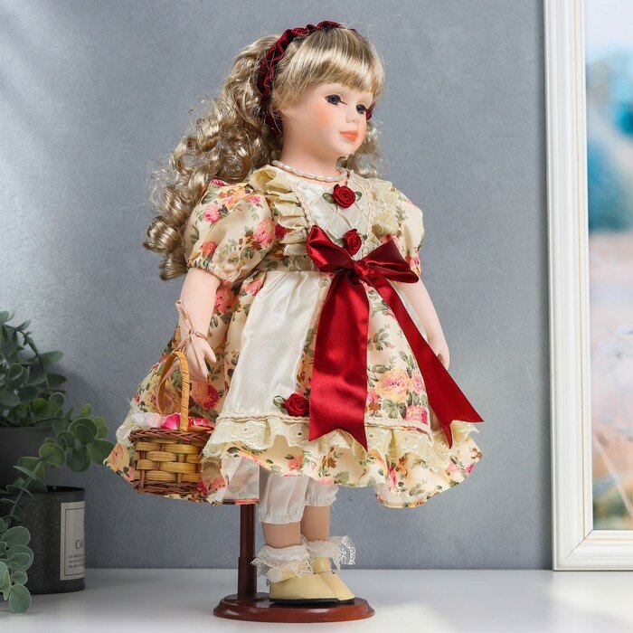 10 цен на Кукла коллекционная керамика "Алла в платье с цветами, и бордовым бантом, с корзиной" 40 см 626094