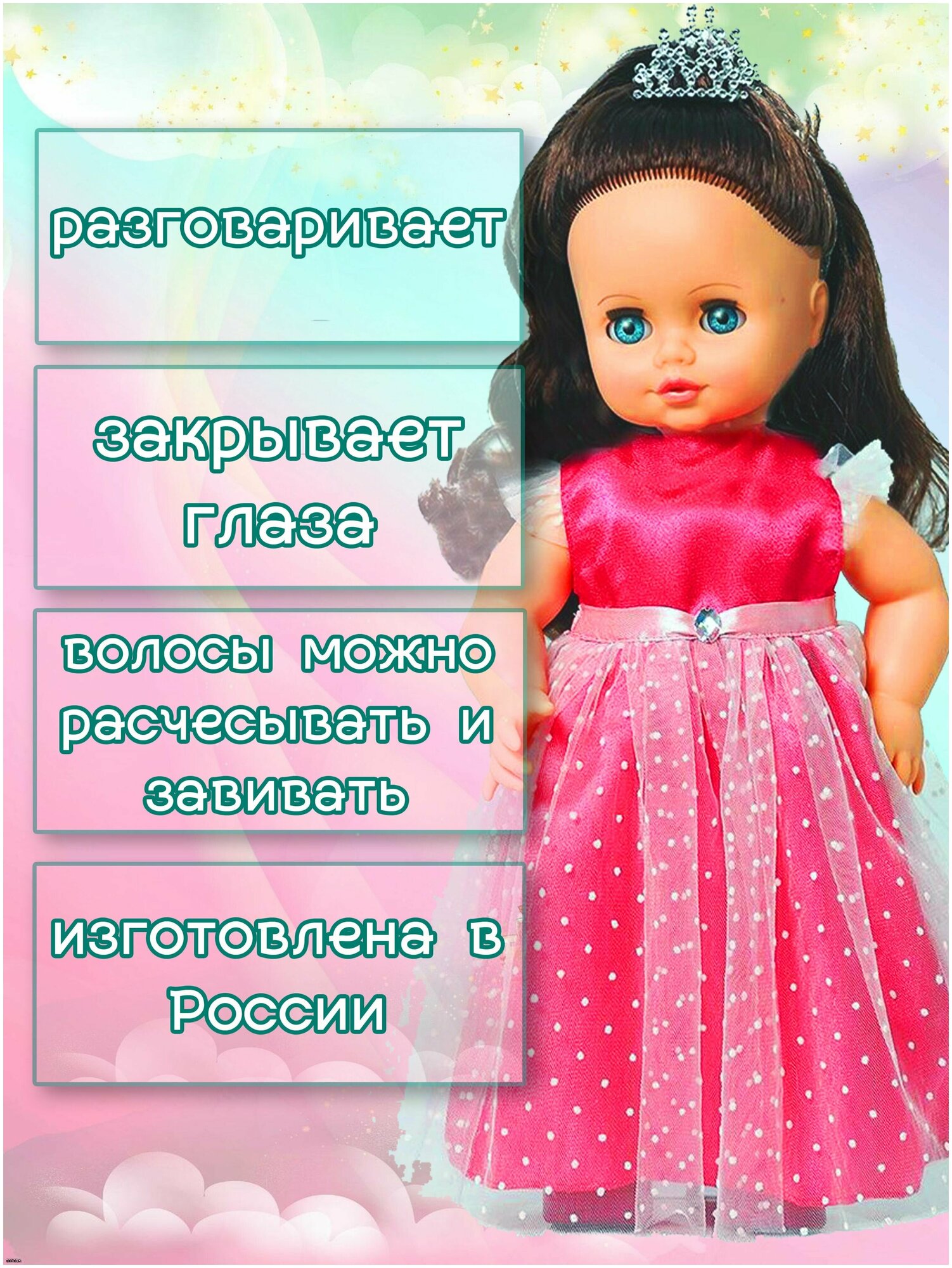 Классическая озвученная кукла Инна Принцесса, 43 см (закрывает глаза, говорит, можно завивать волосы) информация: