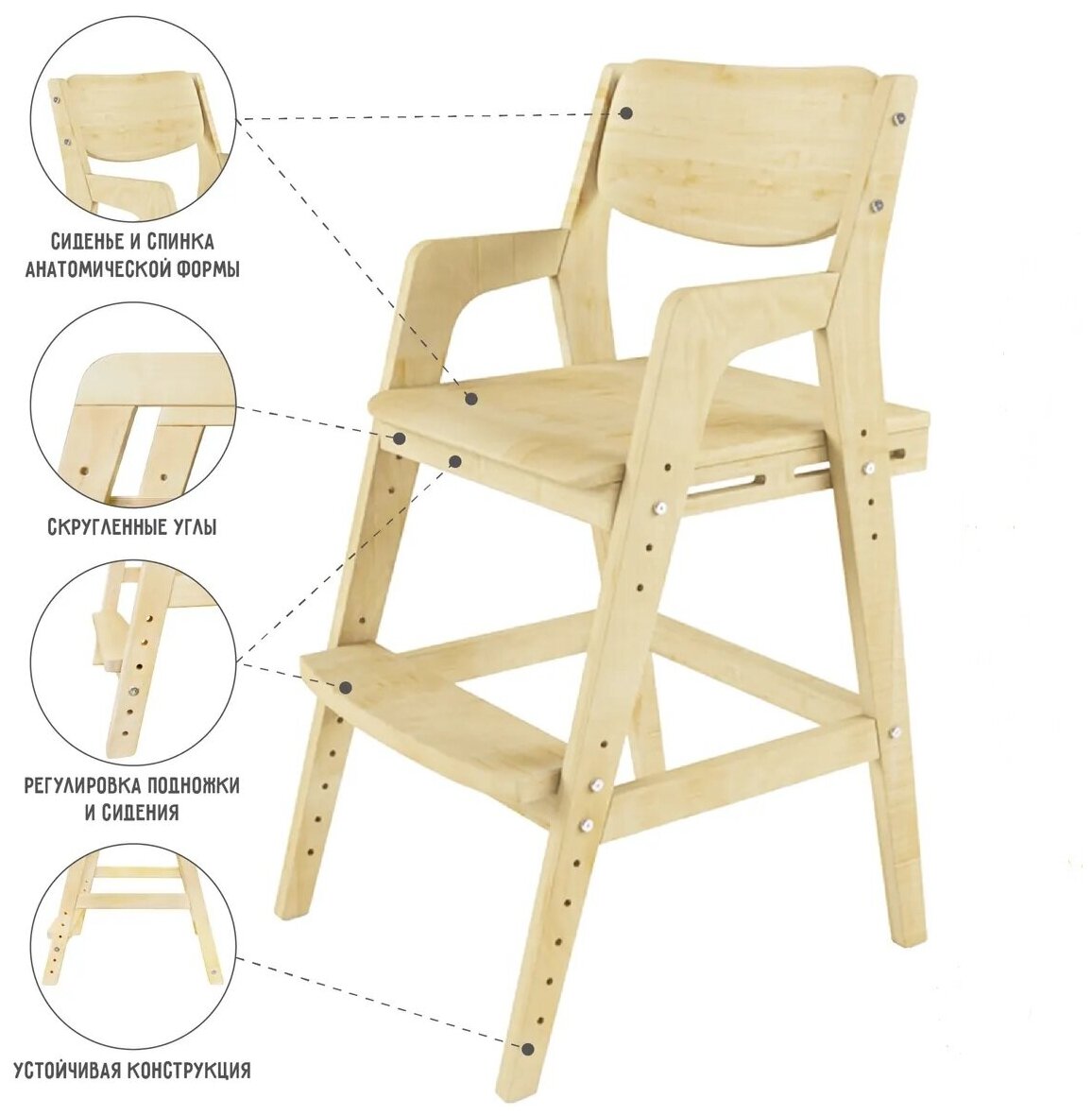 Растущий стул для детей FORLIKE белый, с подлокотниками, деревянный регулируемый стул