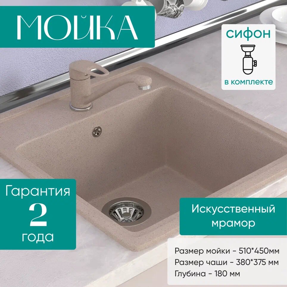 Квадратная кухонная мойка S-10 белая матовая, из искусственного камня с сифоном 6 500 ₽