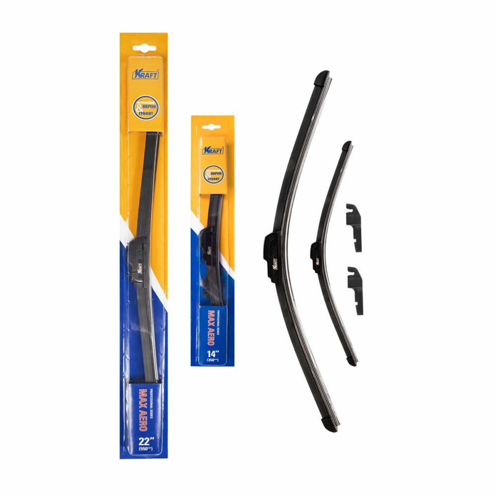 К-Т бескаркасных щеток стеклоочистителя 550340 ММ, 1 адаптер, KRAFT KT830904 (1 шт.)