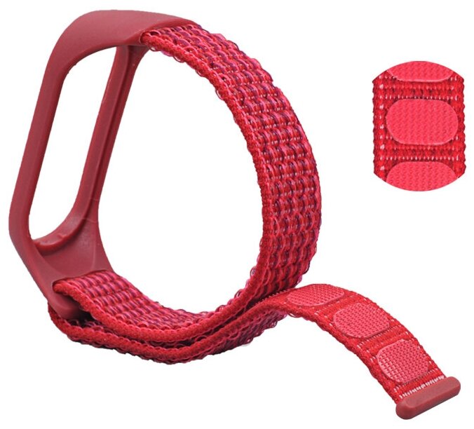 Ремешок нейлоновый Sport для Xiaomi Mi Band 3/4/5/6/7, на липучке, красный (1) 339 ₽
