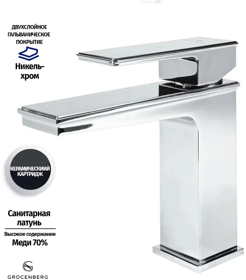 Cмеситель для раковины Grocenberg GB2088 Хром, стандартный, керамический картридж, латунь 13 750 ₽