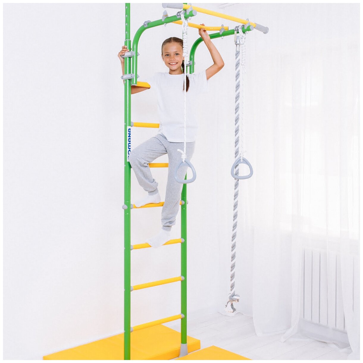 | Подробная комплектация | - шведская стенка; - подвижный турник; - канат; - кольца; - трапеция. |