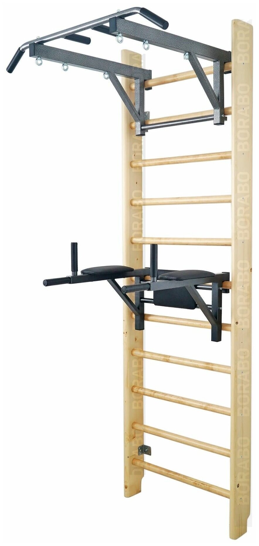 BORABO Шведская стенка металлическая 240x71x16 см + Навесной турник + Брусья Пресс