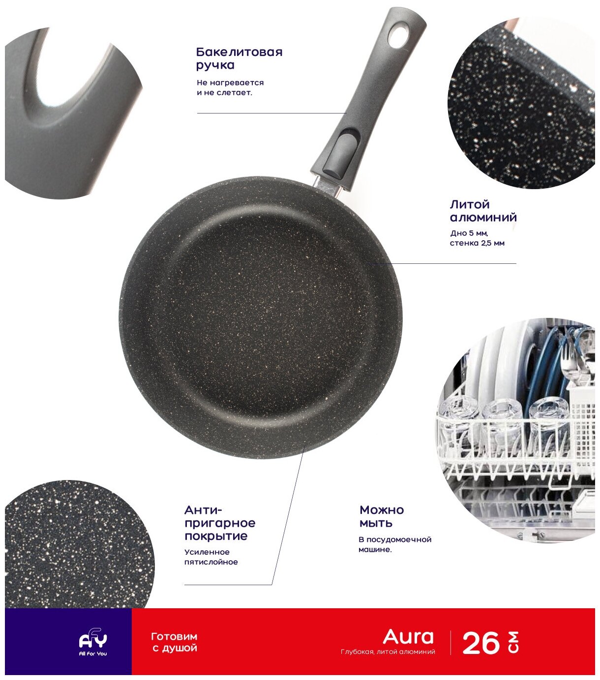 10 цен на Сковорода AFY Aura, 26 см, глубокая, съёмная ручка, литой алюминий, антипригарное покрытие