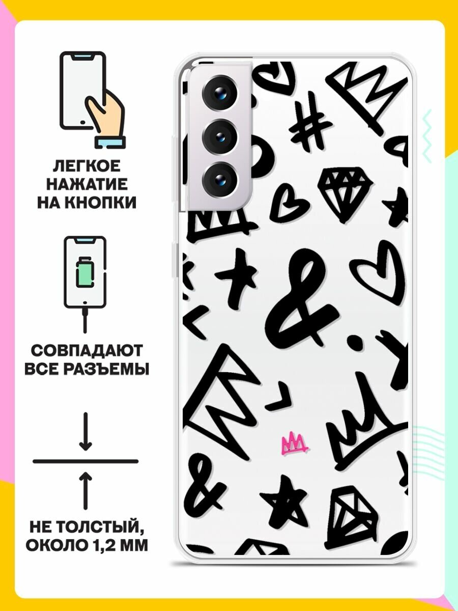 Отзывы на Силиконовый чехол на Samsung Galaxy S21 FE Узор черный / для Самсунг Галакси С21 ФЕ