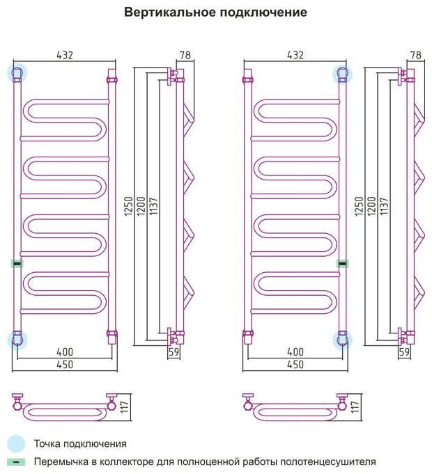 Полотенцесушитель водяной Элегия 1200х400 информация: