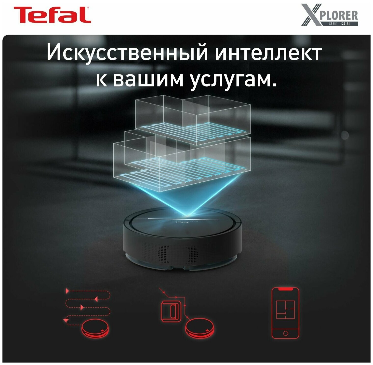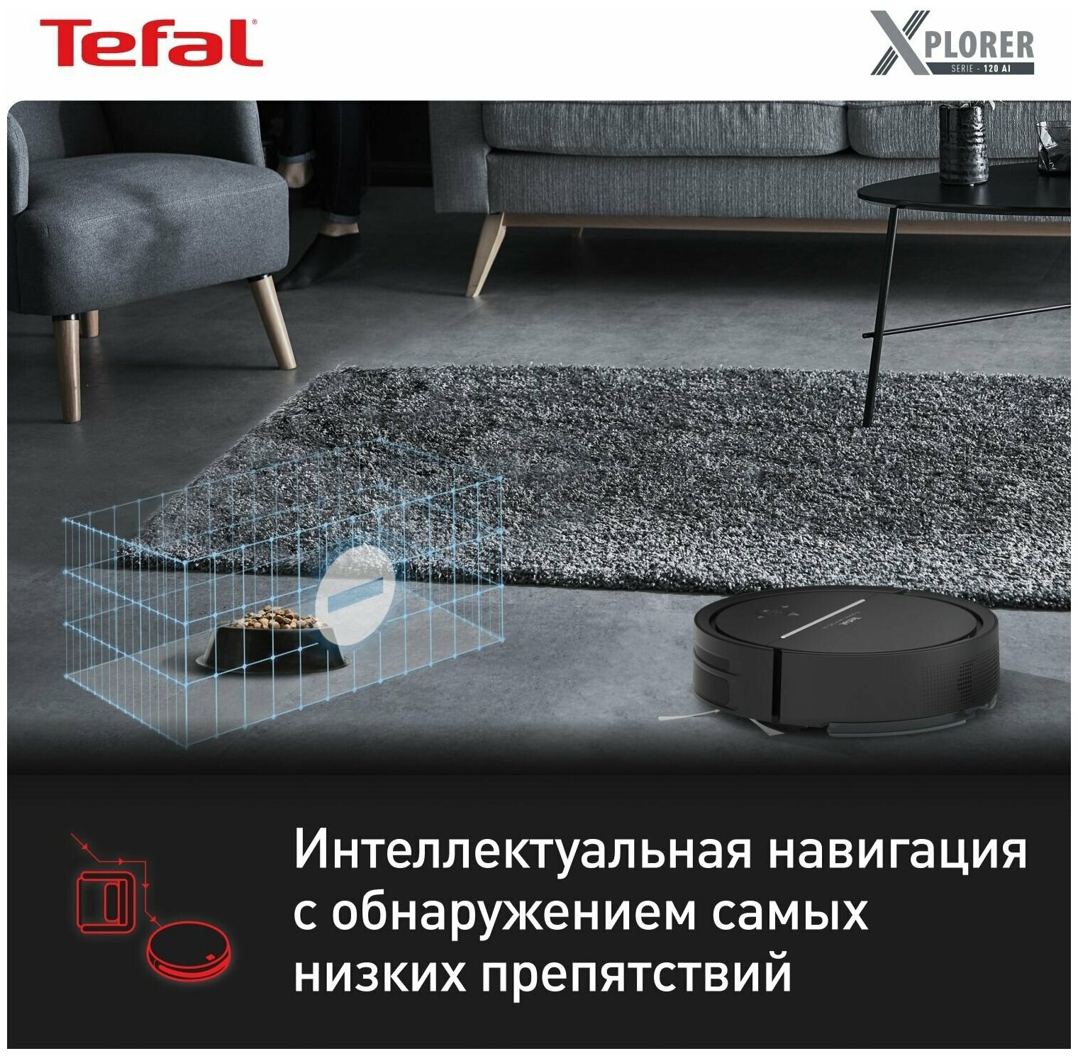 Робот-пылесос 2в1 Tefal X-plorer Serie 120 Animal & Allergy RG7865WH работает с Алисой, с сухой и влажной уборкой до 2ч, черный информация:
