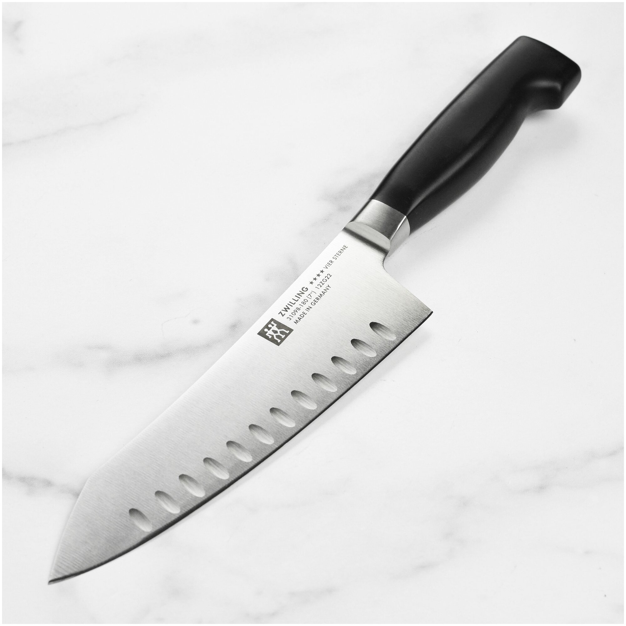 | Комплектация | 1x нож ZWILLING® VIER STERNE, лезвие 9 см, номер ножа: 31070-090 / 1x нож Сантоку ZWILLING® VIER STERNE, лезвие 18 см, номер ножа: 31098-180 |