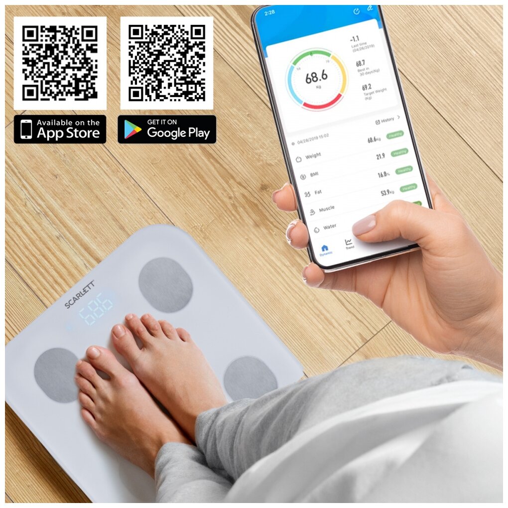 Scarlett Весы SCARLETT SC-BS33ED101 напольные диагностические c BLUETOOTH, 10 показателей тела, коллекция Silver Line