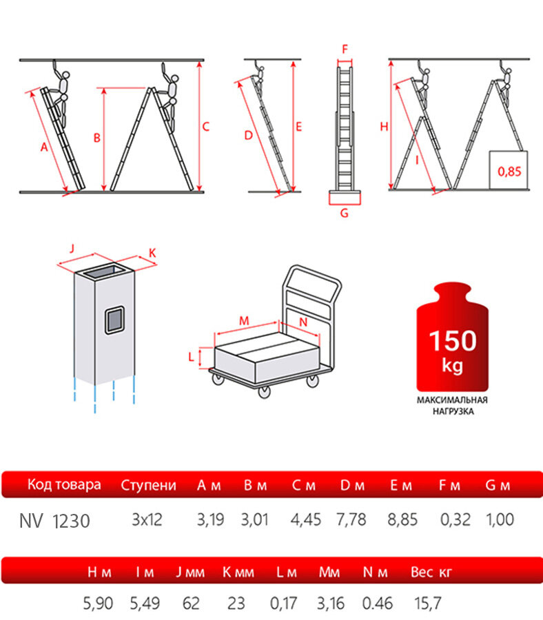 Новая высота NV 1230 лестница-трансформер телескопическая трехсекционная 12 ступеней бытовая информация: