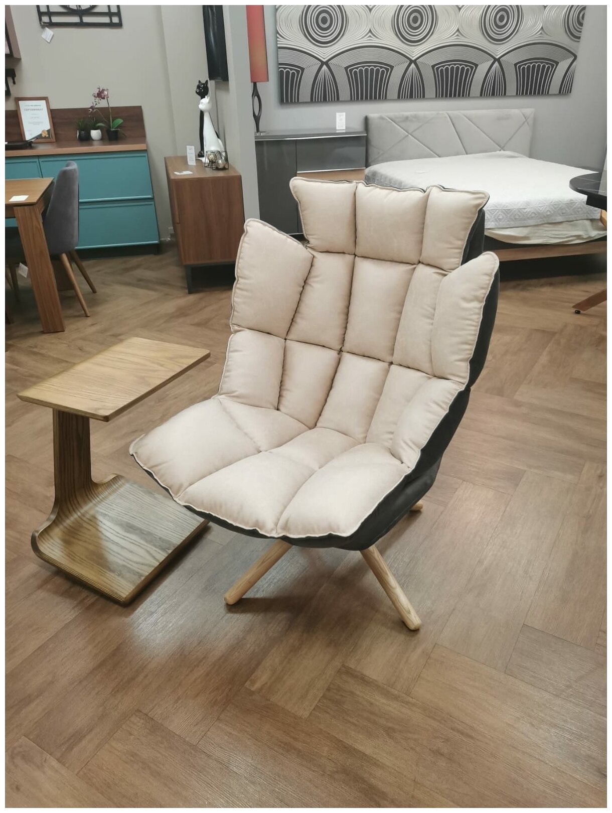 Дизайнерское кресло lounge middle interio, айвори