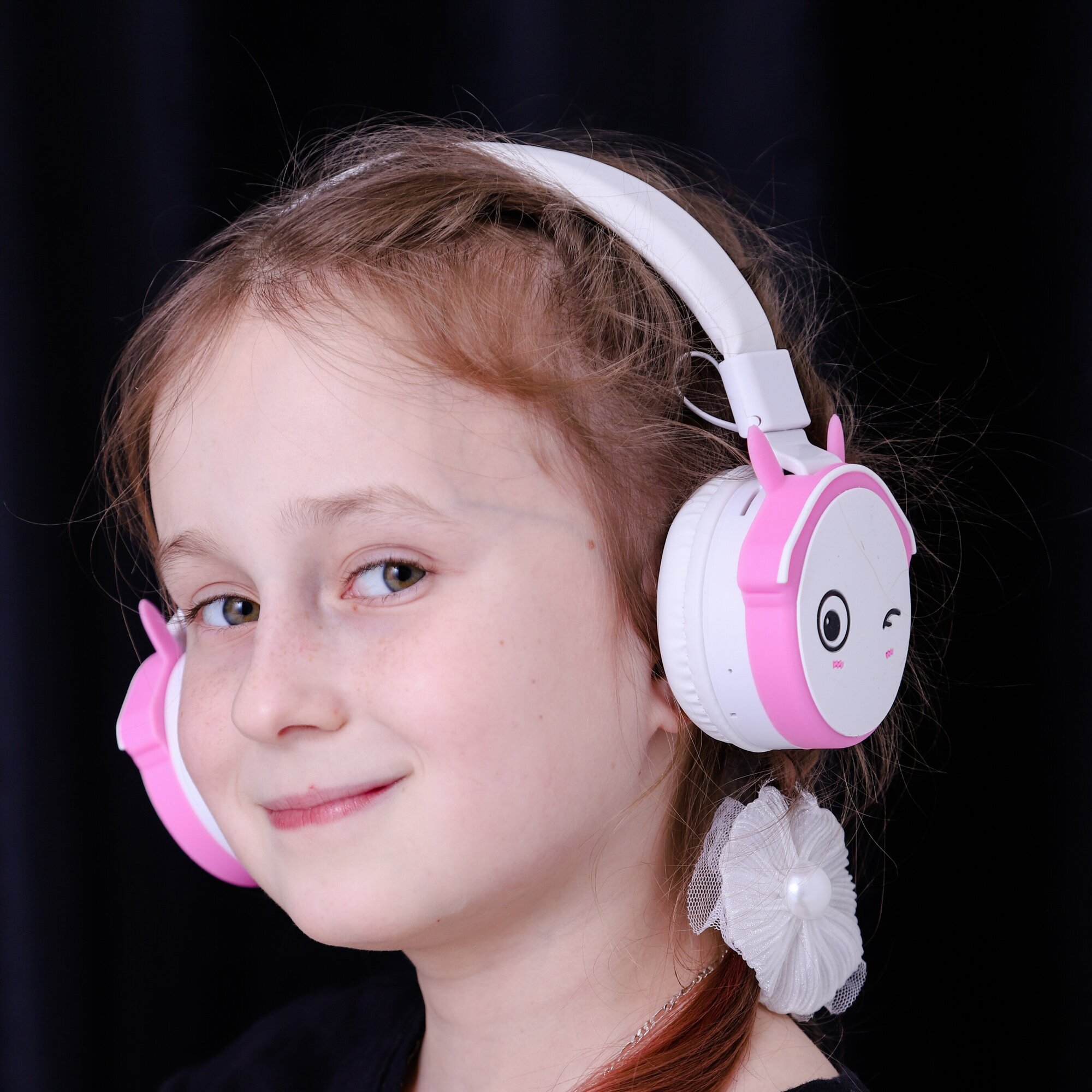 Наушники детские беспроводные, Единорожка KR-9900, Bluetooth 5.0, полноразмерные, накладные с микрофоном, розовые