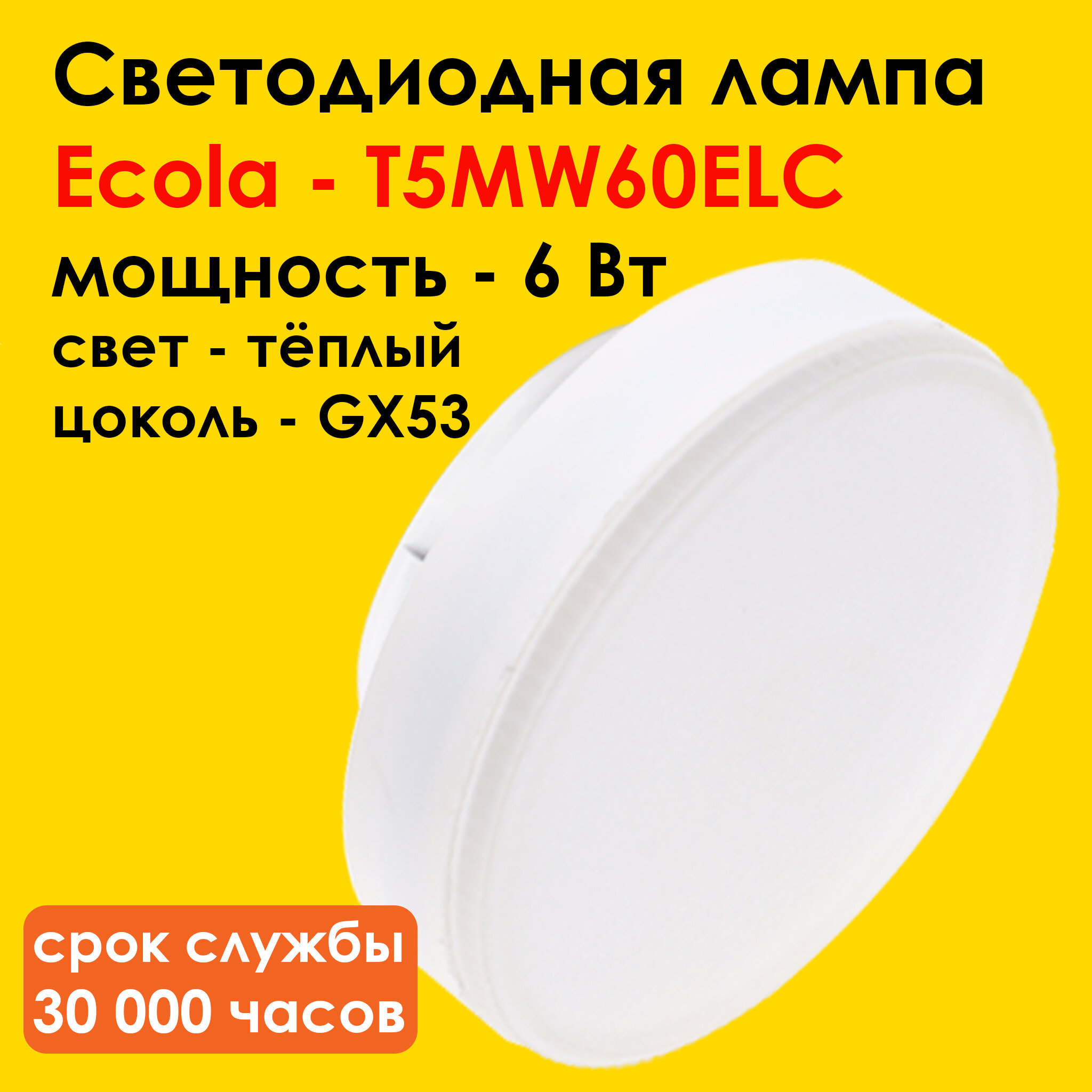 Светодиодная лампа ECOLA T5MW60ELC GX53, 6 Вт, белый