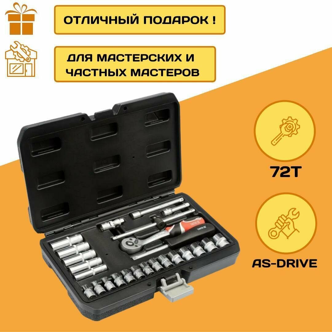 Набор инструментов YATO 1/4", 25 предметов, CrV, CrMo, 72T, AS-DRIVE, YT-14461 Отличный подарок информация: