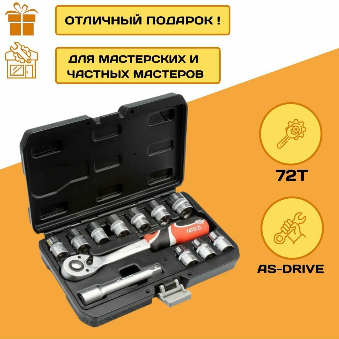 Набор головок YATO 1/2" в кейсе, 12 пр., CrV, CrMo, 72T, AS-DRIVE, YT-38671 Отличный подарок информация: