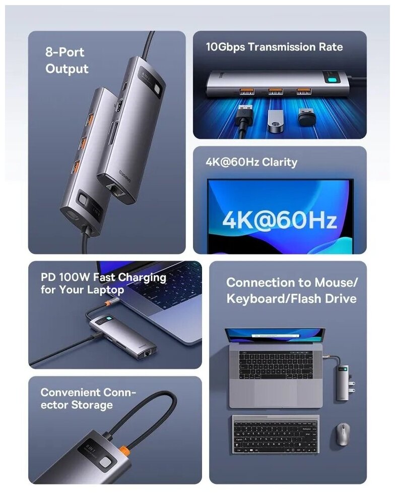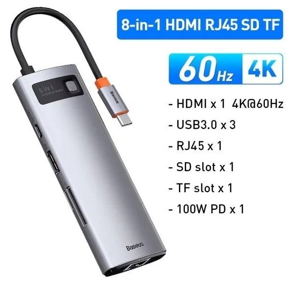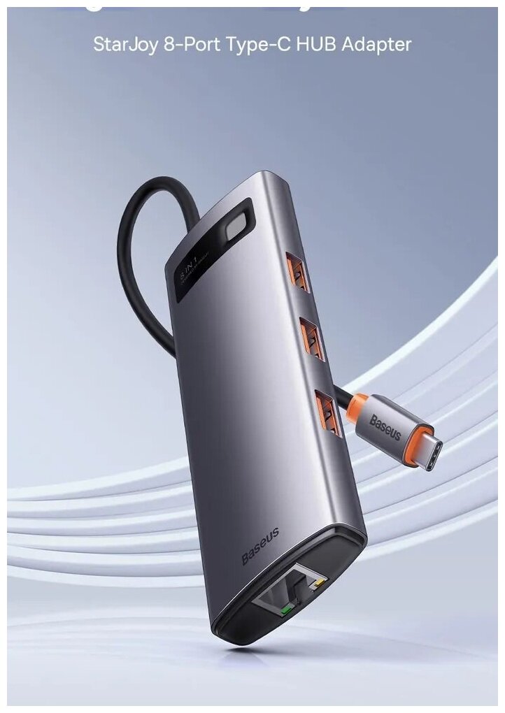 Отзывы на Хаб USB-концентратор Baseus 4K@60Hz 8-in-1 STARJOY 8-PORT TYPE-C HUB ADAPTER Gray (WKWG080113)