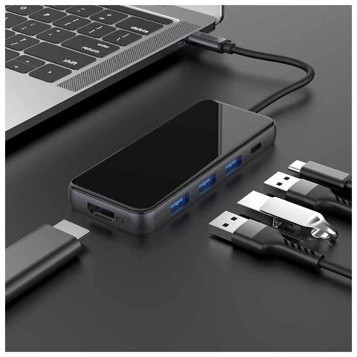 Отзывы на Хаб Hoco HB15 Easy Show Type-C adapter Type-C to USB3.0*3+HDMI+PD Cерый