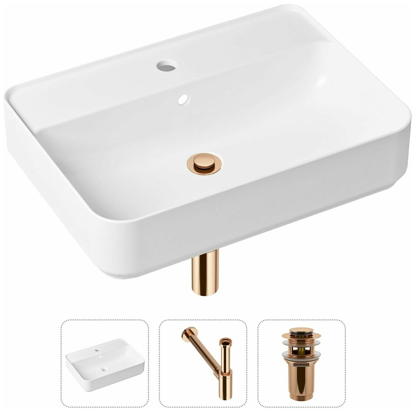 Комплект 3 в 1 Lavinia Boho Bathroom Sink 21520335: накладная фарфоровая раковина 60 см, металлический сифон, донный клапан информация: