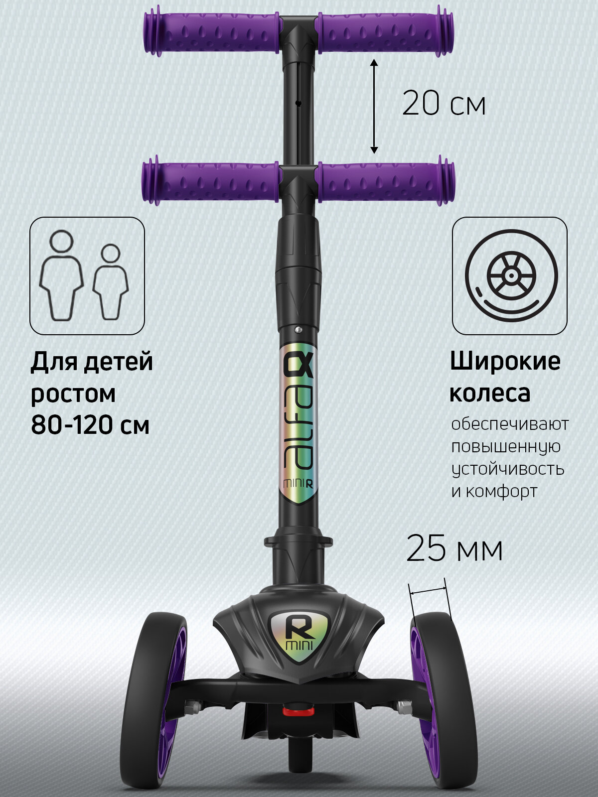 Самокат, самокат трехколесный детский, с цветными колесами и цветными ручками, Buggy Boom Alfa Mini R, фиолетовый информация: