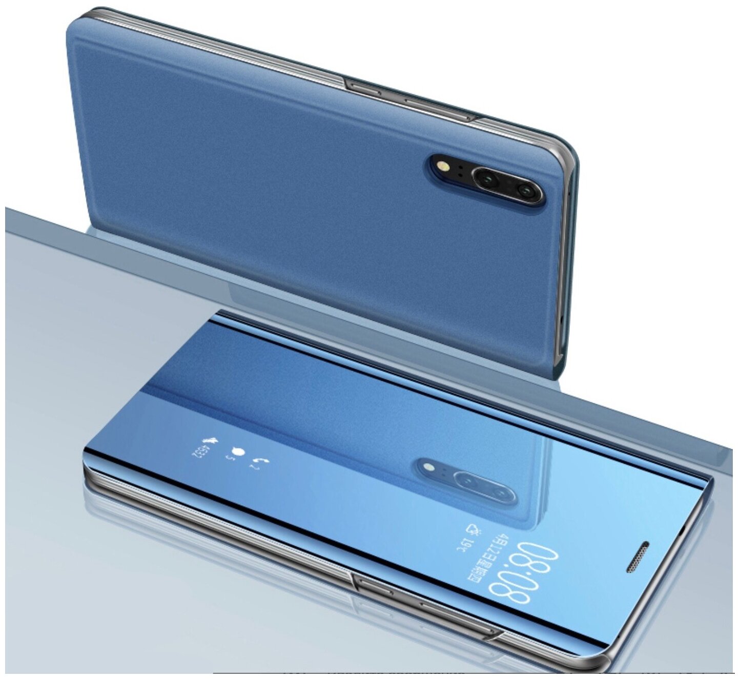 Чехол-книжка Чехол.ру для Xiaomi Redmi 7A с дизайном Clear View Cover с полупрозрачной пластиковой крышкой с зеркальной поверхностью синий информация: