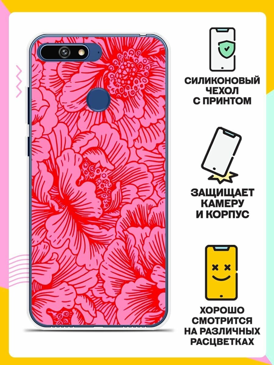 Отзывы на Силиконовый чехол на Huawei Y6 Prime 2018 Цветы красные / для Хуавей У6 Прайм 2018
