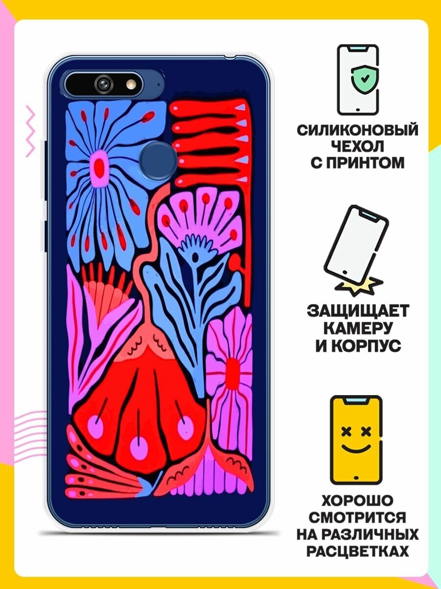 Отзывы на Силиконовый чехол на Huawei Y6 Prime 2018 Цветы на синем / для Хуавей У6 Прайм 2018