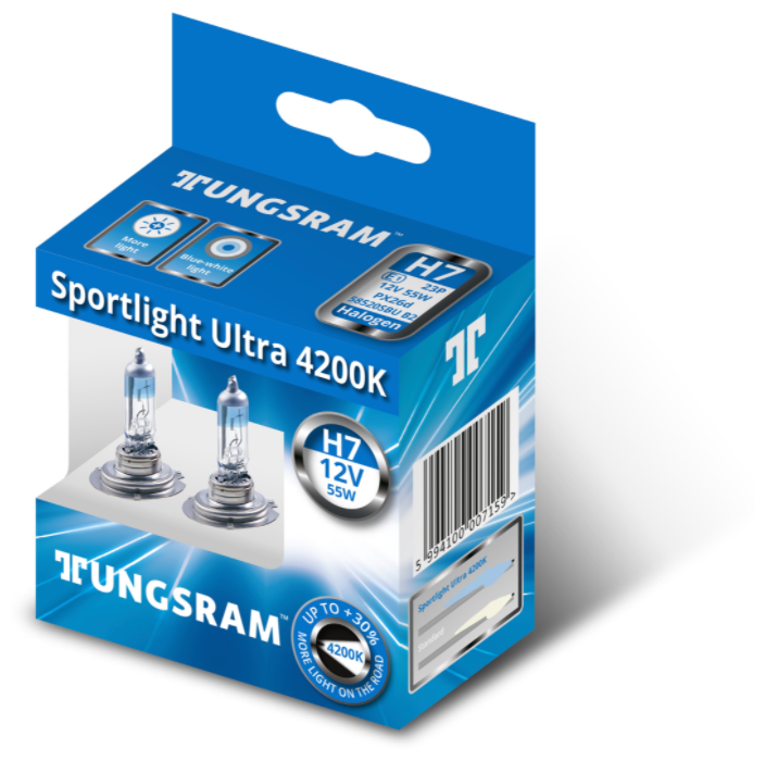 Лампы H7 12V- 55W (PX26d) (белый свет-голуб.оттен.) Sportlight Ultra (к.уп.2шт.) 93097899 информация: