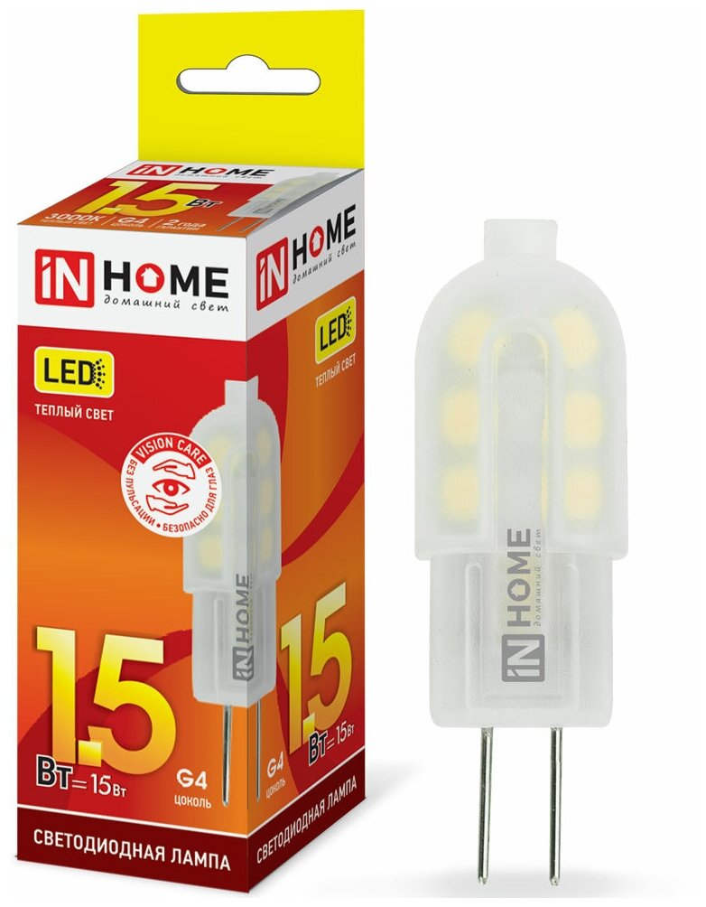 Отзывы на Светодиодная лампа IN HOME LED-JC-VC 1.5Вт, 12В, G4, 3000К, 95Лм 4690612019772
