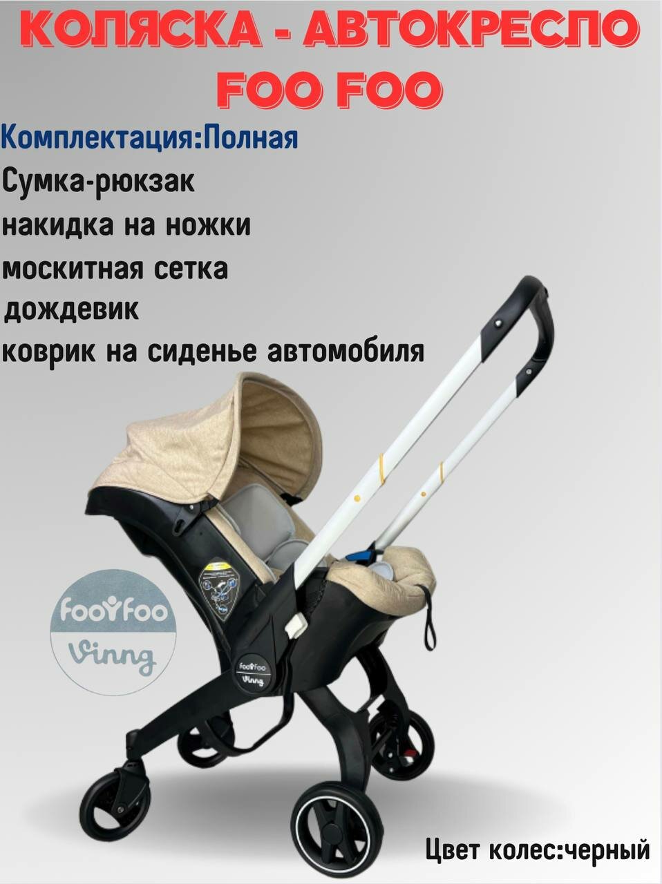 Отзывы на Универсальная модульная коляска 4 в 1 (автокресло-переноска) Foo Foo Vinng + сумка-рюкзак + накидка на ножки, цвет бежевый
