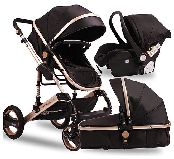 Отзывы на Детская коляска-трансформер 3 в 1 Wisesonle Q3, черный лен с дополнительным матрасиком