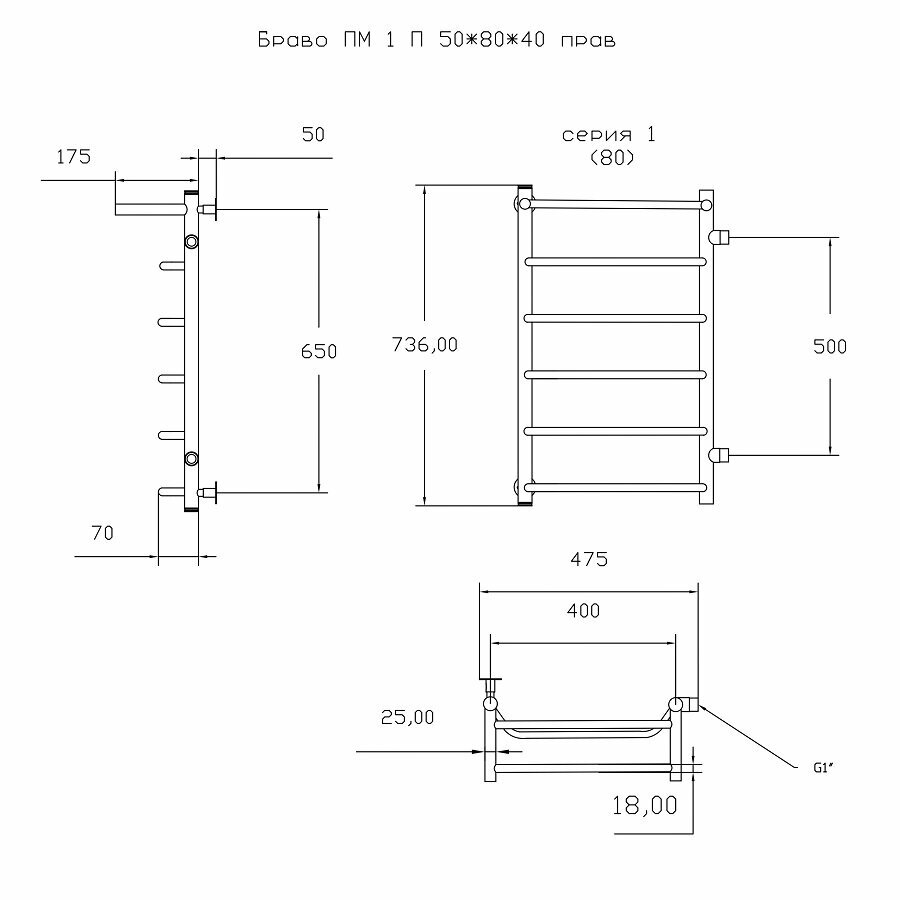 Полотенцесушитель Браво ПМ 1 П 50*80*40 (ЛЦ4) правый