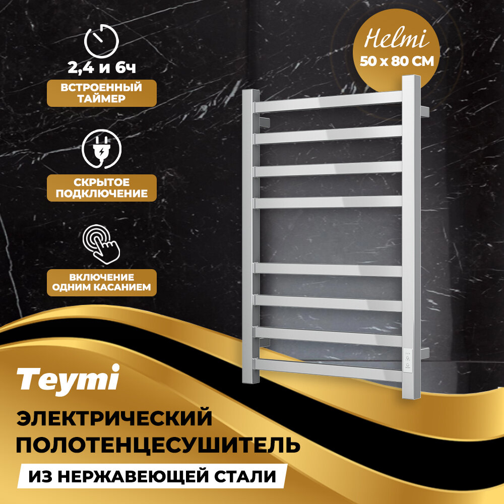 10 цен на Полотенцесушитель электрический, прямоугольное сечение Teymi Helmi П8 50х80, с таймером, подключение левое/правое