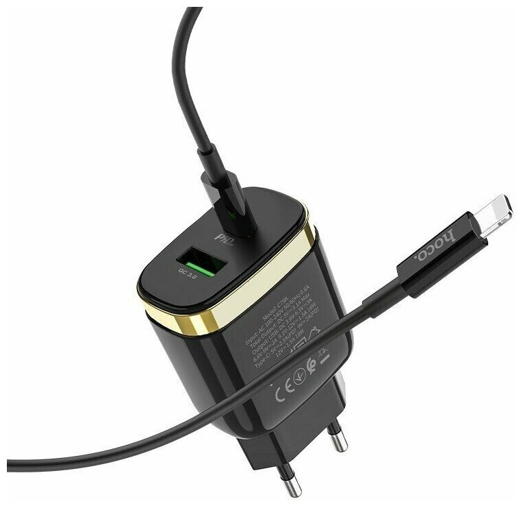СЗУ Hoco (6931474727633) C79a 2USB 3.1A PD 18W+QC3.0 Lighting Type-c 1м черный информация: