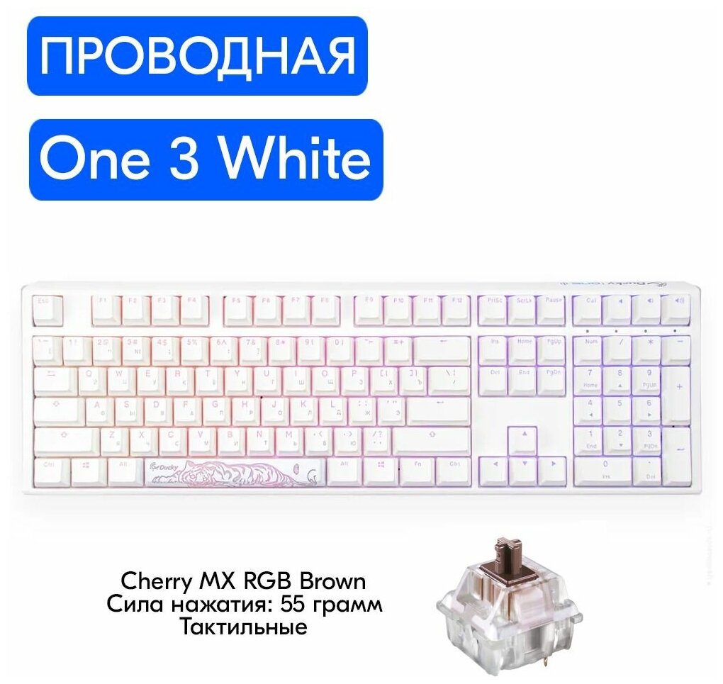 Клавиатура Ducky One 3 Fullsize RGB Pure White Cherry MX Brown Switch (RU Layout) информация: