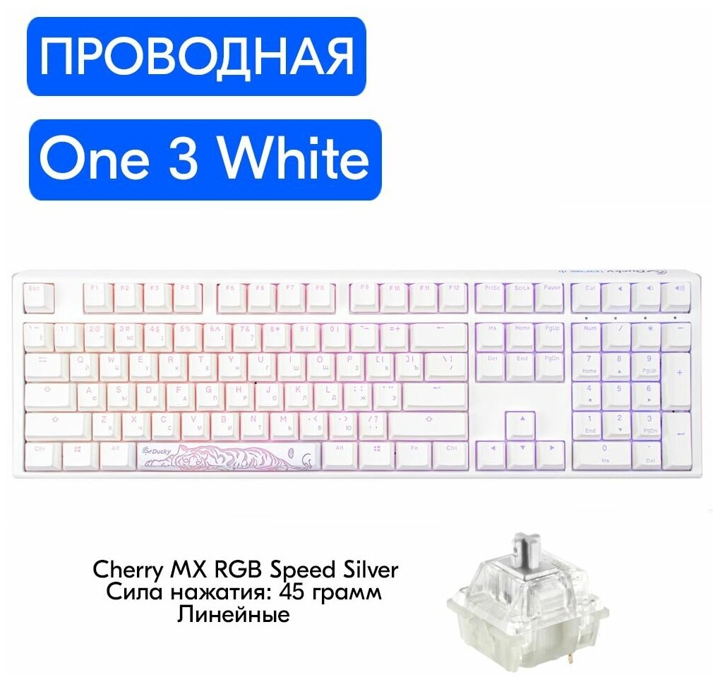 10 цен на Клавиатура Ducky One 3 Fullsize RGB Pure White Cherry MX Silver Speed Switch (RU