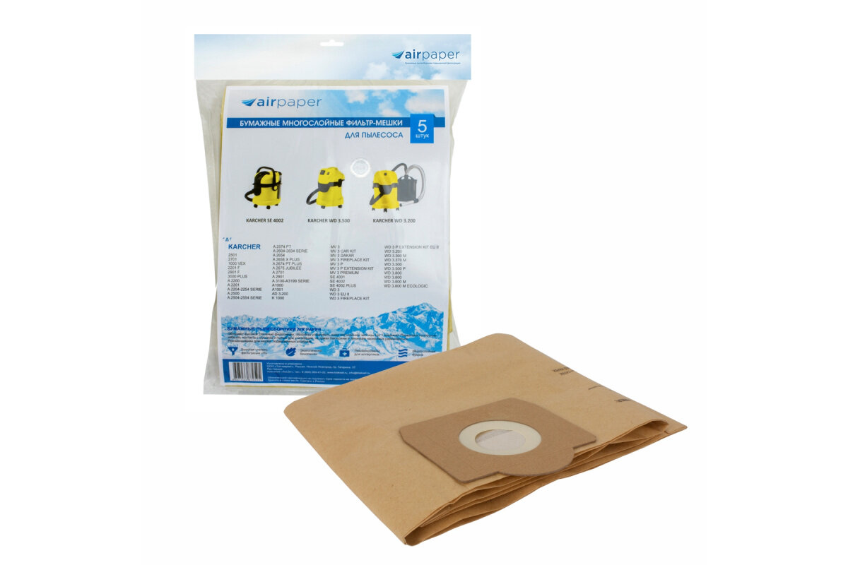 Фильтр-мешки бумажные 5 шт для пылесоса KARCHER WD 3 (1.629-800.0) информация: