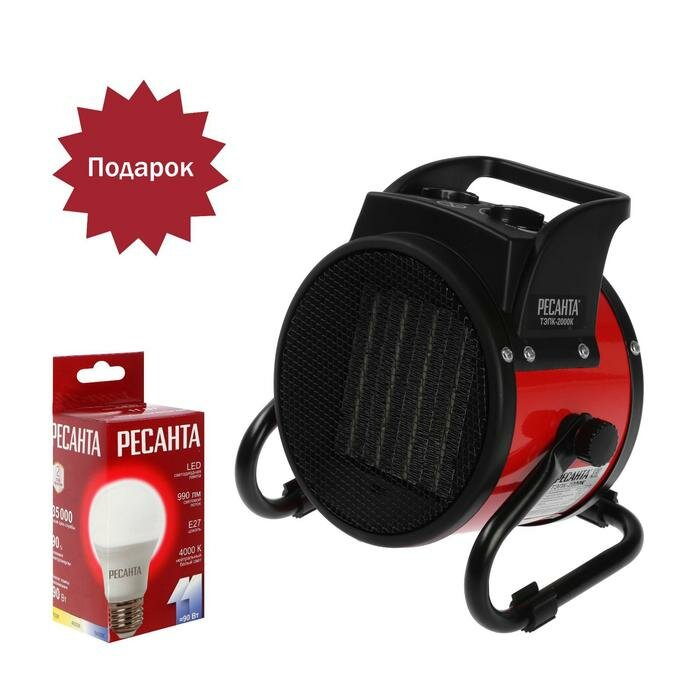 10 цен на Тепловая пушка "Ресанта" ТЭПК-2000K, электрическая, 25/1000/2000 Вт, 120 м3/час + подарок./В упаковке шт: 1