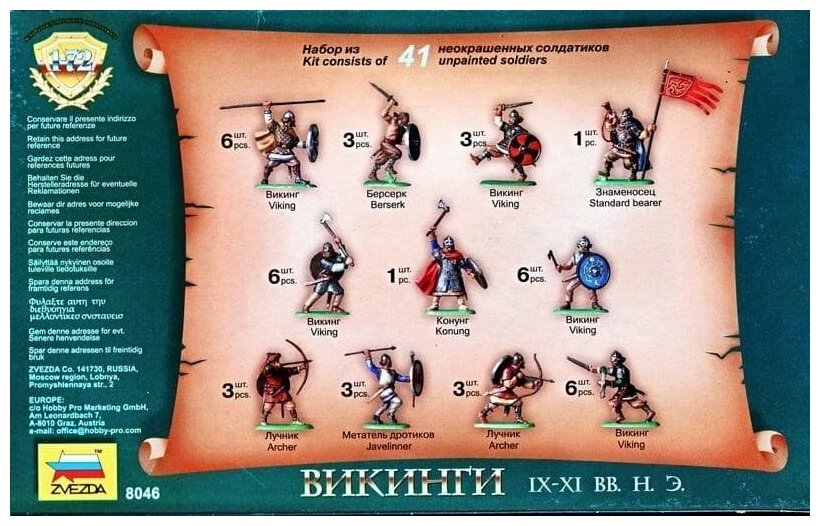 Сборные солдатики ZVEZDA Викинги IX-XI вв. н.э., 1/72 информация: