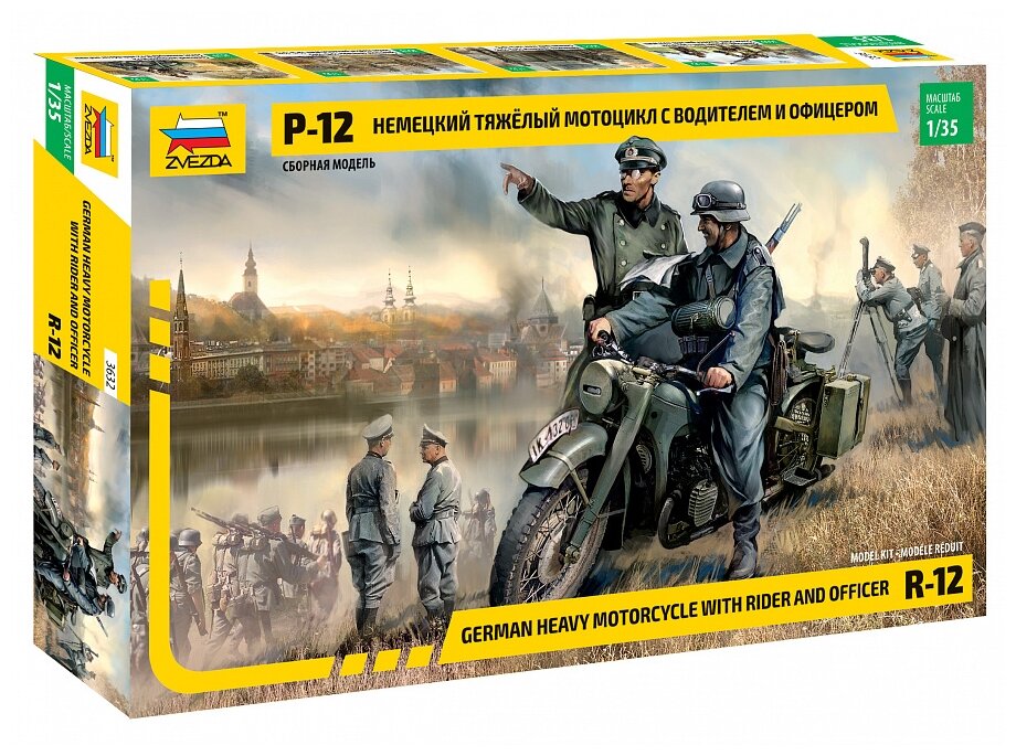 Сборная модель ZVEZDA Немецкий тяжелый мотоцикл Р-12 с водителем и офицером, 1/35, ZV-3632