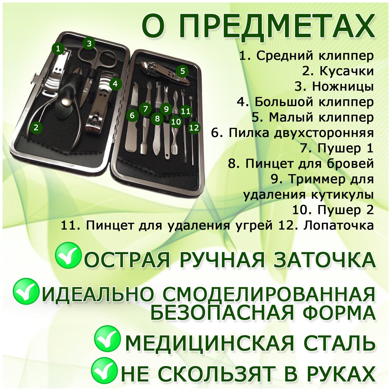 Маникюрный набор мужской, женский / Кейс для педикюра и маникюра 12 предметов информация: