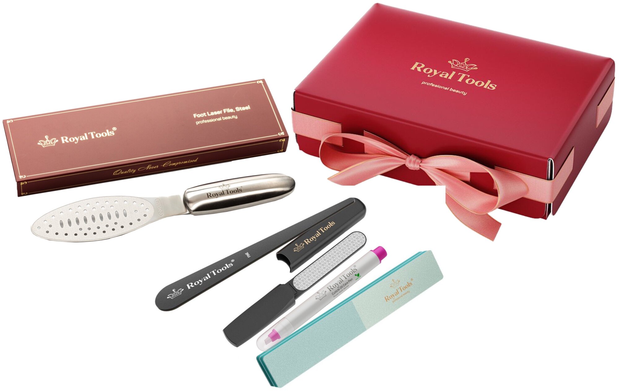 Royal Tools Набор для маникюра и педикюра "полный уход" В подарочной упаковке /"Премиум" Терка для ног , пилка для пяток стальная / 6 предметов