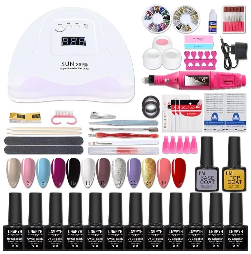 Отзывы на Универсальный набор для маникюра/педикюра с УФ лампой 54W/Аппарат для маникюра и педикюра с гель-лаками 18 шт