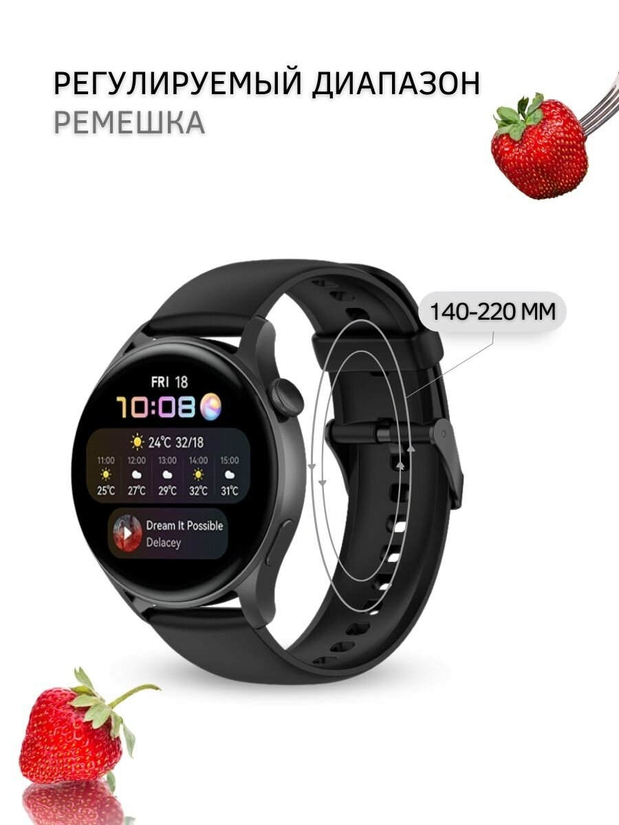 Ремешок для смарт-часов, фитнес-браслета универсальный 22 мм силиконовый браслет с пряжкой Xiaomi Samsung Huawei Honor, черный