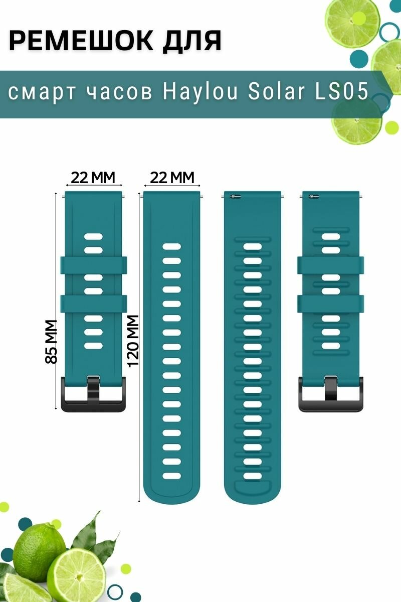 10 цен на Ремешок для часов Haylou Solar LS05, для часов Хайлоу, Geometric силиконовый, (ширина 22 мм.), морская волна