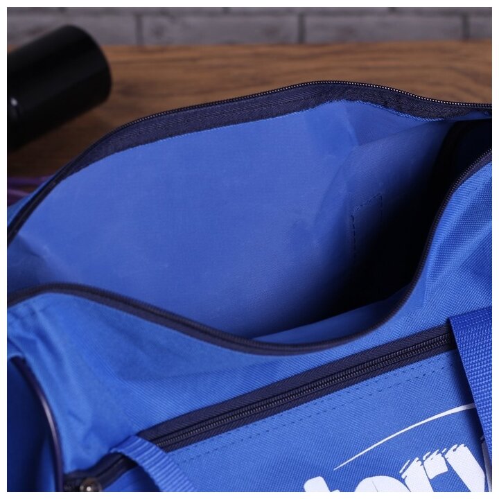 Сумка дорожная на молнии, отдел для обуви, наружный карман, длинный ремень, цвет синий