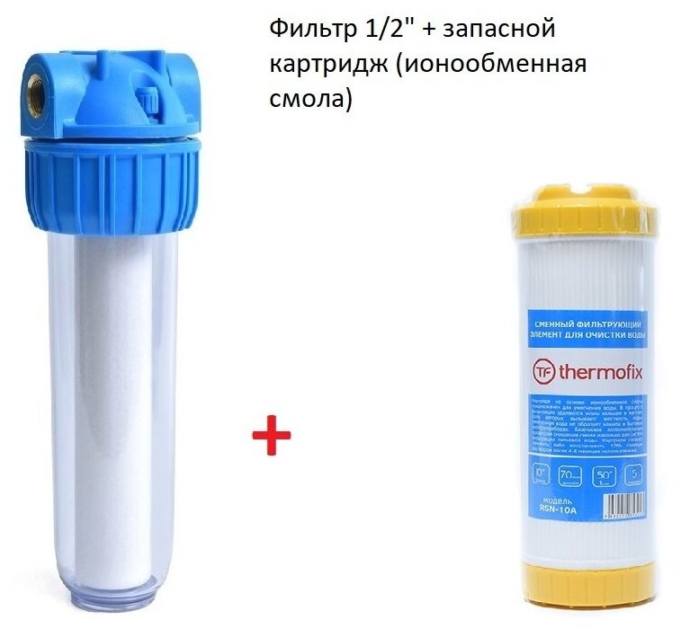 10 цен на Магистральный фильтр "Thermofix" (1/2" колба с гайкой, 10", с картриджем) (ионообменная смола,5 мкн) Slim Line